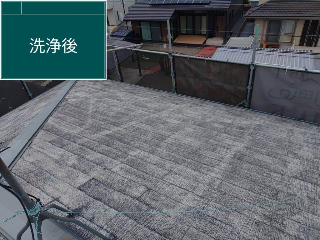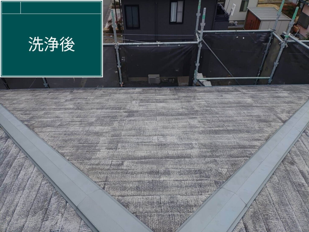 洗浄後は、屋根本来の状態がはっきりと現れます。ここで初めて下地の劣化状況を正確に判断できるため、高圧洗浄は単なる清掃ではなく「下地診断の工程」でもあります。