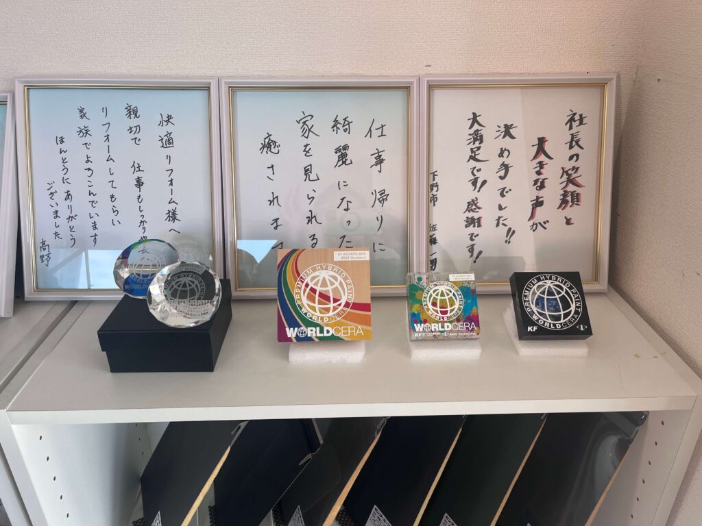 今回評価していただいた「KFワールドセラ」は、無機塗料の中でも非常に耐久性が高く、紫外線や雨風に強い次世代型の高耐久塗料です。一般的な塗料と比べても耐候性が高く、美しい外観を長く保つことができるため、多くのお客様から高い評価をいただいております。