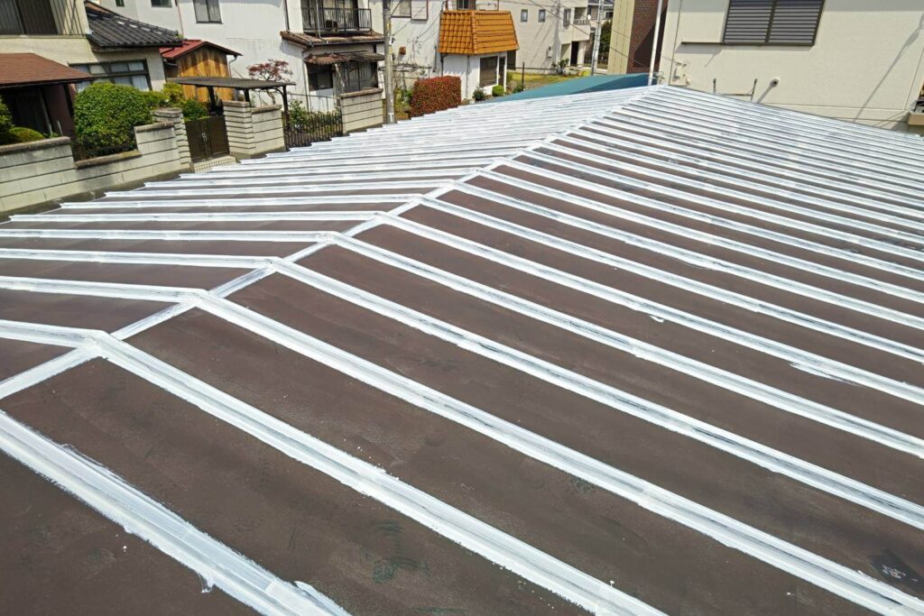 さらに、鉄部には欠かせないサビ止め塗装を実施。トタン屋根はサビの進行が早いため、防錆処理をしっかり行うことで、屋根の寿命を大きく左右します。