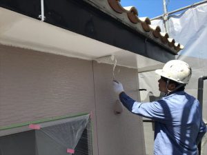 軒天の塗装は防カビ塗料のセラマイルドという関西ペイントの塗料を使用し2回塗りにて仕上げました。
