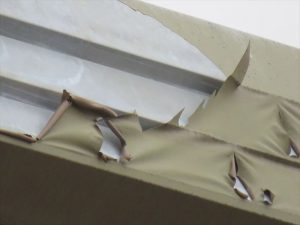 通常、既存のシーリングを撤去してから、新規にシーリングを打設いたしますが、今回はシーリングが木下地に接着しているため、撤去が不可能でした。
