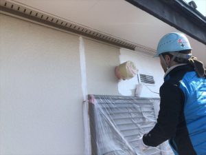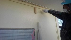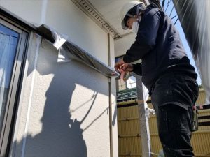 養生作業が完了しましたら、軒天部分から塗装作業を開始いたします。