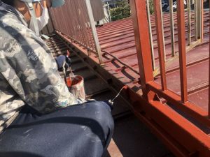 かなり劣化が見受けられましたが、サンダーなどを使用しできる限り既存の塗膜を取り除き、錆止めを全面に塗装し、上塗りはフッ素塗料にて塗り替えました。