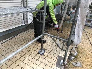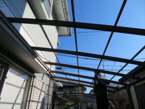 まず足場設営の前に、カーポートの屋根を外し、足場が組めるようにしました。