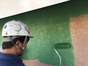 関西ペイントのアレスクールプライマーを使用しました。下塗りの段階から太陽光を反射させ、温度の上昇を抑えます。