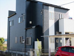 北面のコケ汚れが気になるため、色のパターンを逆にしての塗り替え工事でした。