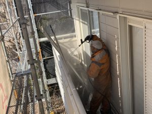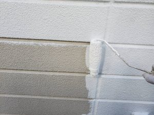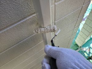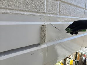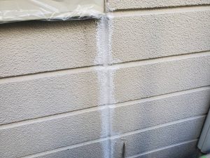 今回は目地のシーリング工事は行いませんので、目地部分にフィラーという下塗り材を刷毛で、1本ずつ塗装します。