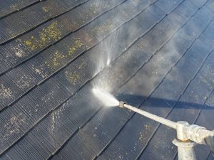 高圧洗浄です。屋根。外壁はもちろん、雨戸の裏側もきれいに洗いました。