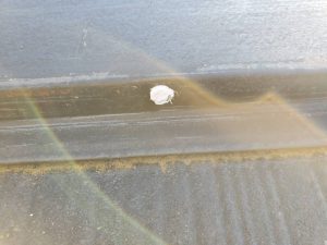 割れている個所の補修や、板金部分のつなぎ目、釘の頭など、水が入ってしまいそうな個所をシーリングで補修しておきます。