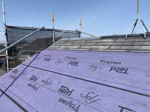 ルーフィングを全面に貼りました。