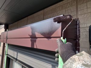 シャッターボックスや、雨樋は、下塗りを行なってから、上塗りを行っております。