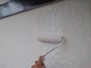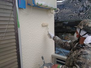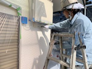 外壁のクラック補修などをしてから塗装作業に入ります。