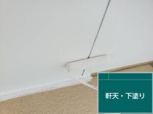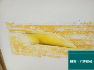 軒天のパテ処理を行ってから塗装作業です。