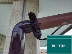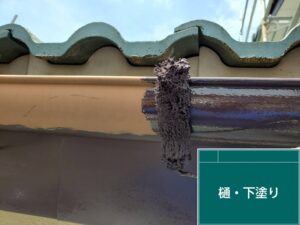 雨樋や破風の下塗りです。
