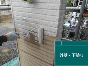 外壁の下塗りです。フィラーを使用しがっちりです。