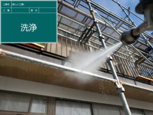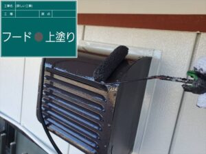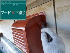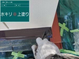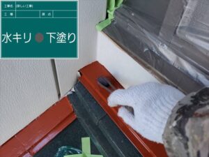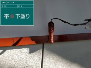 付帯部分に錆止め塗装を行ってからビニール養生を行います。