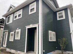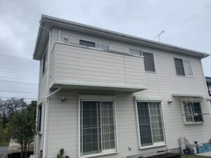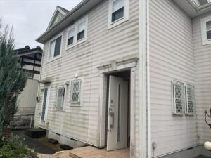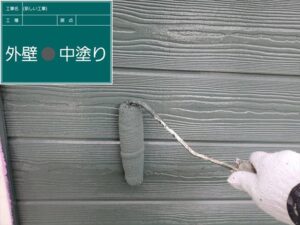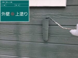 今回は外壁は無機遮熱塗料での施工の為かすれやすいので、下塗りから仕上げ色での施工です。