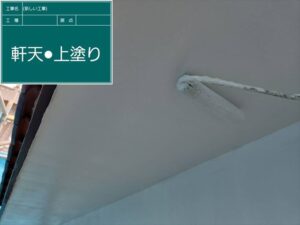 軒天はかなり剝れていましたので、剥がせるだけはがしてから、塗装いたしました。