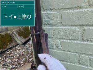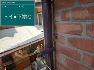 樋もち金具がさびておりましたので錆止めを塗ってから、下塗りを行います。
