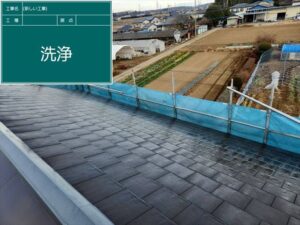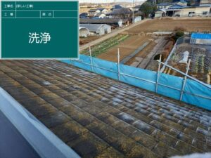 屋根もこのようにコケが生えておりましたが、高圧洗浄機を使用し長年の汚れを洗い流します。