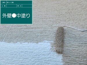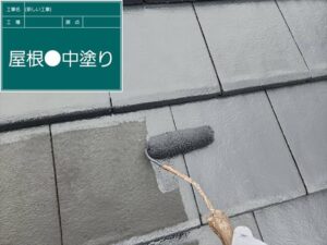 中塗りをKFワールドセラグランツ無機塗料の遮熱塗料で塗装いたします。