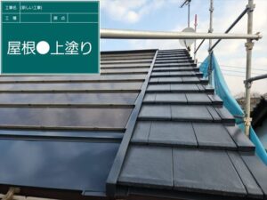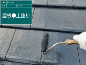 中塗りは、KFワールドセラルーフという超高耐久無機遮熱塗料で塗装いたします。