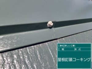 胸板金の釘の頭にシーリングを打ち、雨の侵入を防ぎます。