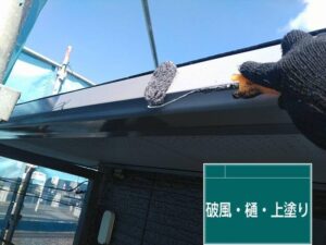 破風、雨トイなどもしっかりと下塗りを塗装してから上塗りはフッ素塗料で仕上げました。