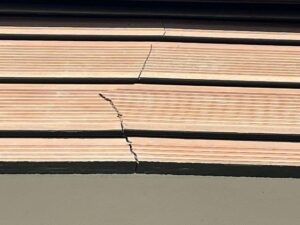 この様な場合、塗装だけではまた割れてしまう恐れがありましたのでサイデイングの交換をお勧めさせていただきました。