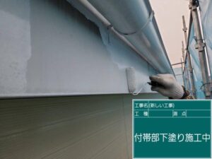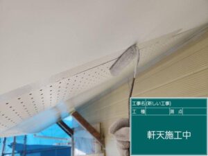 軒天や付帯部分の下塗りを施工します。