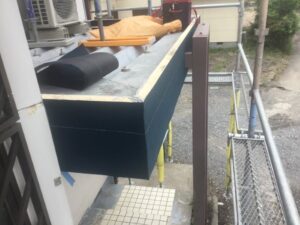パラペットにゴミが入ってしまう造りを改善しパラペットをカバーしていきます。