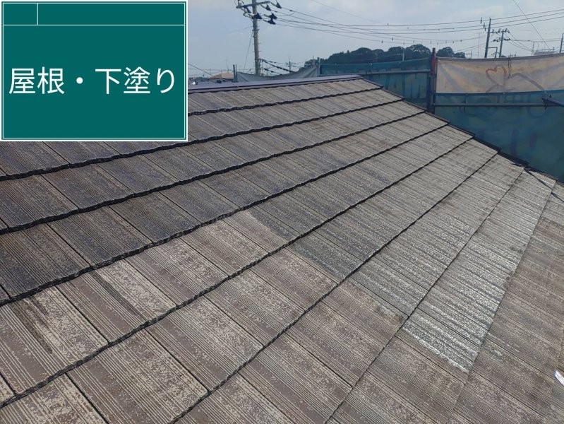 かなり瓦の表面が劣化していた為、今回は下塗りを二回塗りにして、下地をしっかりさせます。