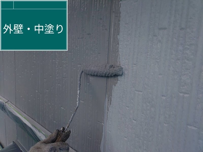 中塗りに無機塗料、KFワールドセラグランツを塗っていきます。